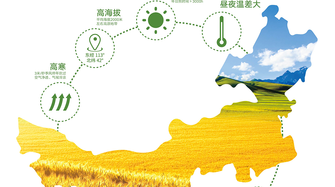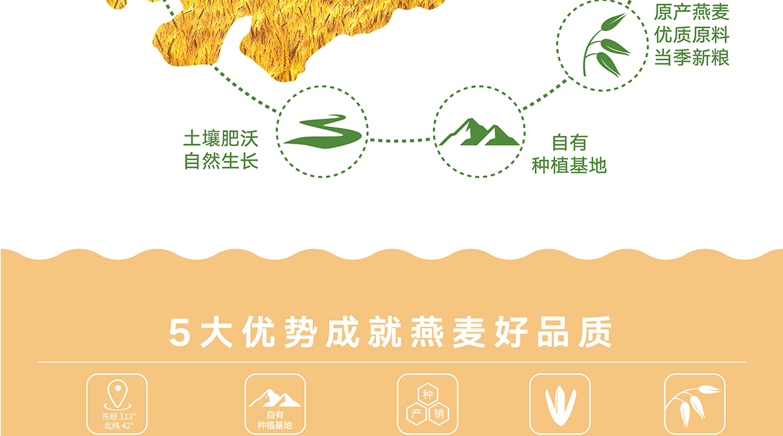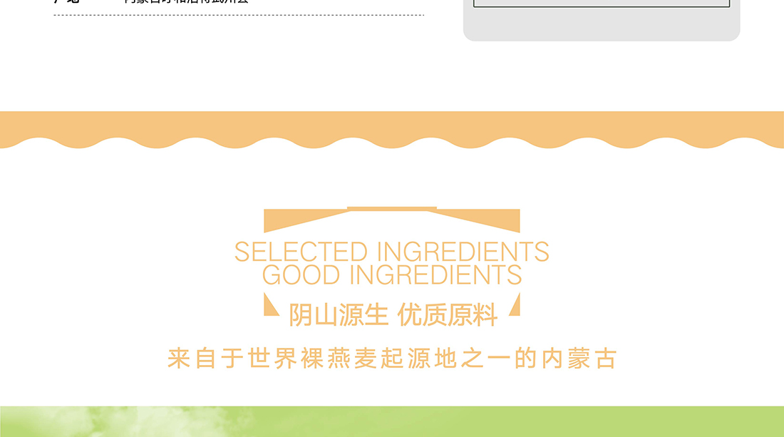 內蒙古,世界裸燕麥起源地之一;陰山源生燕麥在初出生滿足生長規律一切所需,高寒、高海拔、日照充足;遵循自然法則,靠天滋養,自然生長;