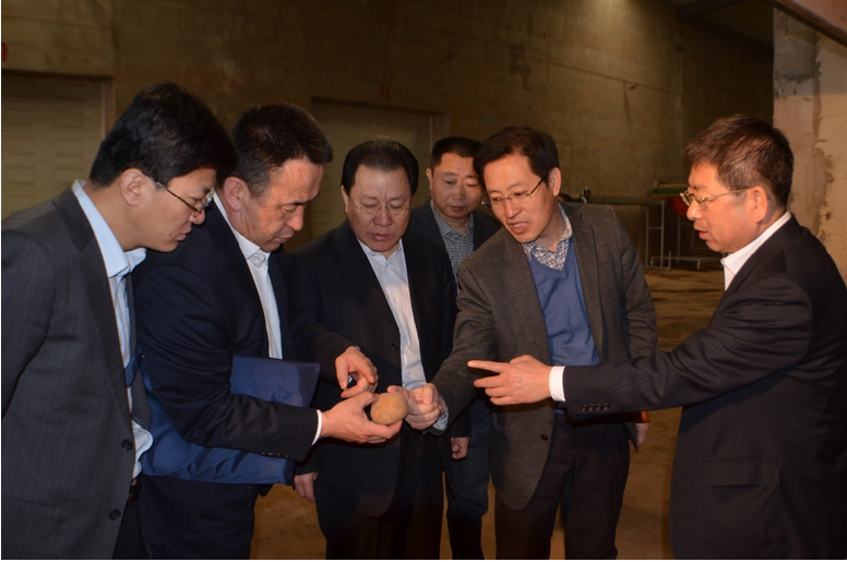 3月27日,內蒙古自治區工商銀行行長吳寧峰、個人金融部總經理楊振平、公司業務部總經理紀彥彬來內蒙古民豐薯業公司調研。參加調研的還有工行烏蘭察布市支行行長周慧林、副行長許鴻斌、公司部經理孔海燕。 吳 寧峰一行在民豐薯業公司總經理張國陪同下,參觀了脫毒中心、智能倉儲庫、馬鈴薯研究院和博物館。座談中總經理張國對公司近年來生產經營情況和今后發展 規劃進行了介紹。對公司的融資、股權和市場運營情況進行了詳細了解后,吳寧峰肯定了民豐薯業公司在馬鈴薯行業中的重要地位和取得的成果,希望雙方加強溝通 協作,繼續創新發展,共同推動產業進步。